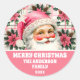 Pegatina Redonda Retro Rosa Santa Claus Navidades Floral Plaid