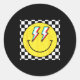 Pegatina Redonda Retro Smile Face Checkered Pattern Preppy Happy Fa