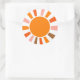 Pegatina Redonda Retro Sun Rays Naranja de la puesta de sol rojo am