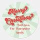 Pegatina Redonda Retro Verde Rojo Feliz Personalizado navideño