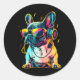 Pegatina Redonda Retrowave French Bulldog with Headphones and Sungl