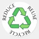 Pegatinas con un símbolo de reciclado en tres tonos de verde y el texto "Reducir el reciclaje de reutilización"