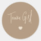 Pegatina Redonda Revelación de género de Chica de equipo marrón min