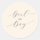 Pegatina redonda clásica beige de revelación de género de fiesta con guión minimalista simple