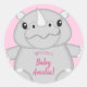 Pegatina Redonda Rhino Baby Shower Safari Chica rosado