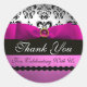 Pegatina Redonda RIBBON DE DAMASK NEGRO PINO MONOGRAM Violeta Púrpu