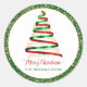 Este pegatina festivo presenta un árbol de Navidad en rojo y verde con acento purpurina dorado. Texto "Feliz Navidad" en rojo. Perfecto para enviar saludos de temporada a todos los que estén en su lista.