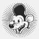 roedor retro personalizado, con peinado pompadour, granos y dientes carnosos, sobre un soporte radiante. B/W, camisetas y regalos.