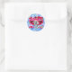 Pegatina Redonda Ríe mujer esqueleto en Red Bonnet