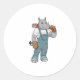 Pegatina Redonda Rinoceronte como Handyman con alicates de bomba de