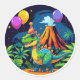 This cool dinosaur sticker with colorful balloons and erupting volcano is a hit for bold birthday parties.