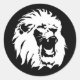Un león ruidoso se enfrenta a un simple diseño gráfico en blanco y negro al estilo de una obra de arte a lápiz. Para los amantes de la vida salvaje y los leones.