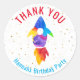 Cohetes acuáticos arcoiris de cumpleaños en el espacio exterior Gracias Pegatinas. Pegatinas de cumpleaños divertidos en acuarela arco iris con fondo de estrella de oro. www.SamAnnDesigns.com