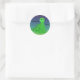 Un lindo dinosaurio con manchas verdes y una cola de araña sobre un fondo verde azul.