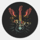 Pegatina Redonda Rock N Roll Guitarra Retro Amantes