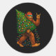 Pegatina Redonda Rockin Christmas Bigfoot Carrying Tree Fun Xmas Ro