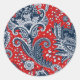 Pegatina Redonda Rojo Blanco & Azul Floral Paisley Boho Bohemio