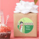 Un muñeco de nieve con árboles de Navidad y estrellas con acento de patrón colorido