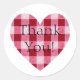 Pegatina Redonda Rojo Gingham Heart Gracias