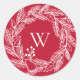 Pegatina Redonda Rojo monograma de la guirnalda rusa blanca de invi