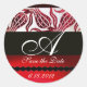 Pegatina Redonda ROJO VELVET DAMASK TULIPS MONOGRAM Borgoña Blanco