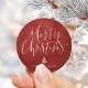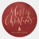 Pegatina Redonda Rojo y Dorado Simple Caligrafía Feliz Navidad