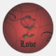 Una bella rosa roja sobre un oscuro fondo rojo y la palabra "amor" sobre estos pegatinas góticos.
