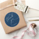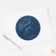 Modern Wedding minimalist Thank You Cookies Gifts Classic favors Round Sticker, in romantic script, little heart, with bride and groom signature and wedding date, navy blue theme.
