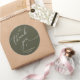 Modern Wedding minimalist Thank You Cookies Gifts Classic favors Round Sticker, in romantic script, little heart, with bride and groom signature and wedding date, olive green theme.