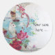 Elegante, elegante, vibrante y clásico diseño floral. Rojas, rosas rosas rosas, flores azules con una paloma blanca cargando una carta en un paisaje marino.