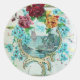 Elegante, elegante, vibrante y clásico diseño floral. Rojas, rosas rosas rosas, flores azules con una golondrina cargando una carta en una capa marina.