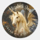 Pegatina Redonda Romántico bosque de cuentos de hadas Unicornio con