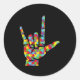 Pegatina Redonda Rompecabezas del lenguaje del Rótulo de amor y aut
