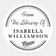 Ronda botánica desde el Pegatina de la Biblioteca de la Planta de Libros. Este pegatina de libros redondos presenta un tipo de letra "De la biblioteca de" con su nombre en la tipografía de serif y un elemento de hoja botánica debajo.