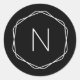 Pegatina Redonda Ronda moderna de octagon monograma negro