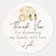 Pegatina Redonda Ropa de bebé Género Neutral Baby Shower Gracias