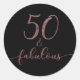 Pegatina Redonda rosa "50 & Fabulous" Purpurina de oro cumpleaños C