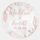 Pegatina Redonda Rosa Boda del monograma de gris bucal botánico