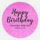 Pegatina Redonda Rosa caliente con texto negro Feliz cumpleaños Peg