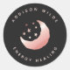 Rosa Celestial Oro Crescent Moon Stars Cosmic Classic Round Pegatina. Este elegante y moderno diseño presenta una luna y estrellas en un sólido fondo negro. Perfecto para un sanador de energía.