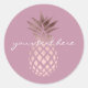 Pegatina Redonda rosa claro de pollo elegante piña tropical dorado