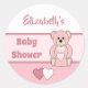 Personalice a estos pegatinas de ducha de bebé con el nombre de la madre. Diseñado en rosa y blanco con un lindo oso de peluche rosa y algunos corazones. Úsalo para pegarse en los bolsos de la fiesta o tal vez para un sello para sobres.