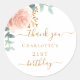 Pegatina Redonda Rosa de cumpleaños oro eucalipto floral gracias