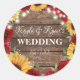 Pegatina Redonda Rosa de girasol rústico Boda de fondo maderero