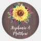 Pegatina Redonda Rosa de madera de girasol de Borgoña Boda