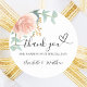 Un elegante fondo blanco. Decorada con rosa de oro verde acuático y floral rosa, rosa, hojas de eucalipto, brotes, vegetación, hojas falsas de oro. Personalice y agregue sus nombres y una fecha. Con el texto: ¡Gracias! + un corazón pequeño.