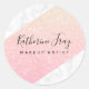 Pegatina Redonda Rosa de oro purpurina de mármol blanco