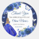 Pegatina Redonda Rosa de Plata Azul Quinceanera Cumpleaños