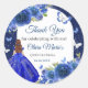 Pegatina Redonda Rosa de Plata Azul Quinceanera Cumpleaños