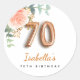 Pegatina Redonda rosa floral de 70 años monograma eucalipto de oro